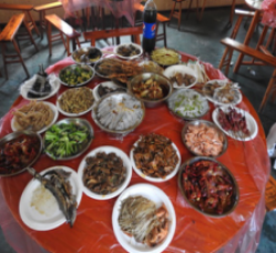 經過團隊的協(xié)同“作戰(zhàn)”,明確分工,不到兩個小時的時間,兩大桌美味佳肴不知不覺就已經呈現(xiàn)在大家面前。